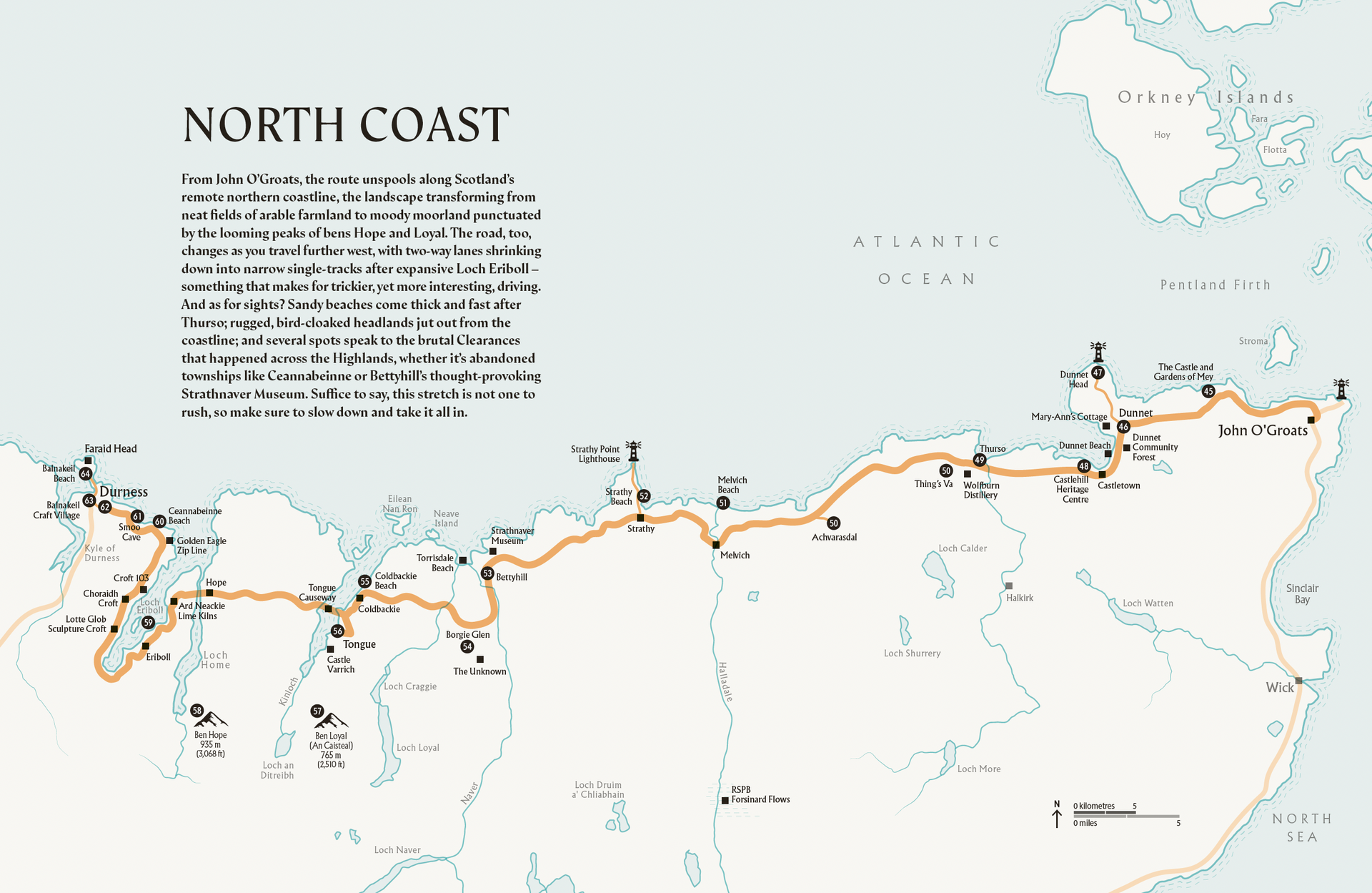 Compared with the enormities of some other long distance routes such as Route 66 or Cape Town to Cairo the North Coast 500 is a more sedate challenge which can be completed within a week. The route was developed locally as a means to promote the far north of Scotland to the tourists who may have stuck to Edinburgh or Skye. It was a huge success, perhaps working a little too well as complaints began to surface regarding facilities to handle the increase in visitors. This book was an opportunity to address traveling the route sustainably.