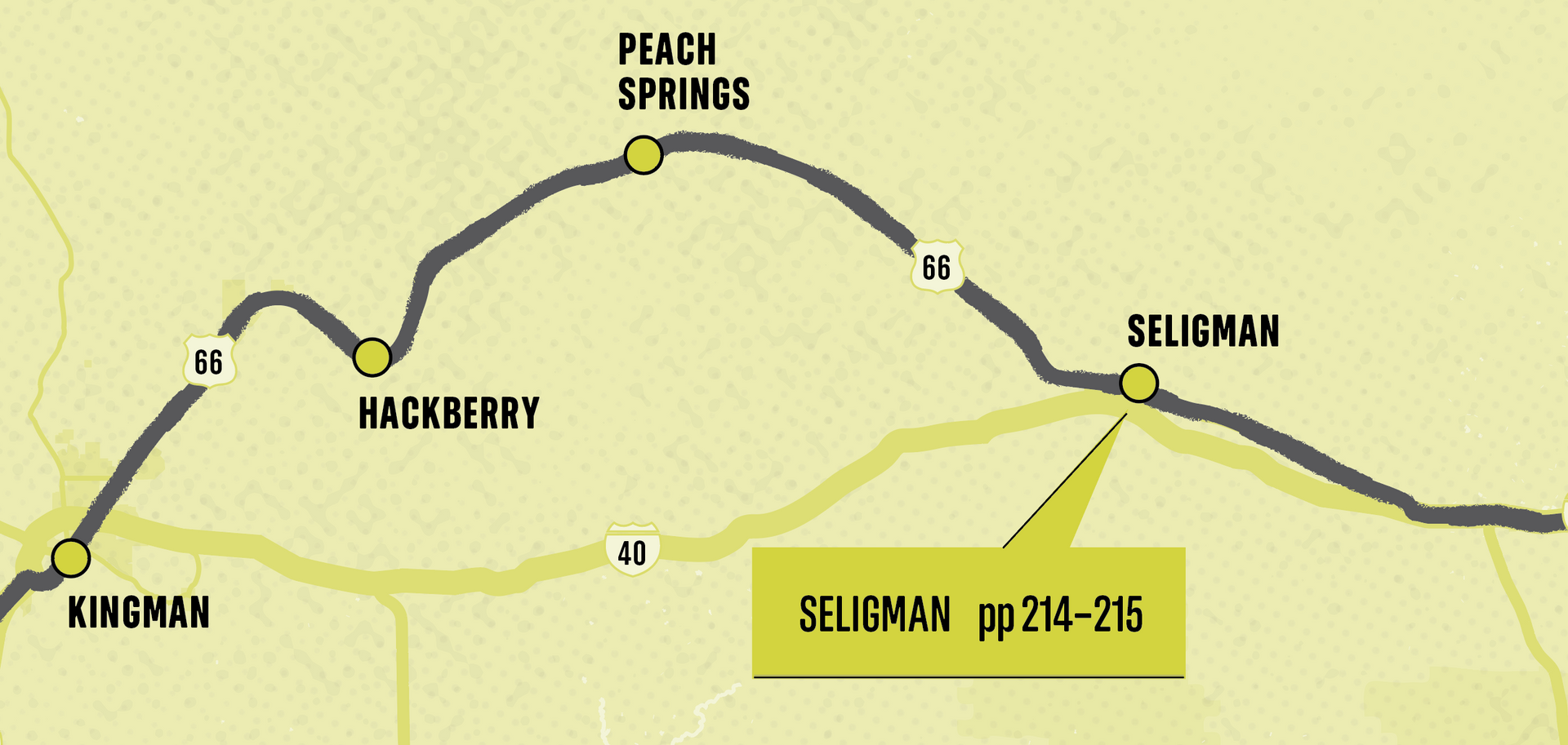 The design department’s mood boards for the book had many beautiful images of rusted and sun faded roadsigns and the warm welcoming curves of diner counters and petrol station pumps. This needed to be echoed on the maps and the addition of a texture was locked in from an early stage.